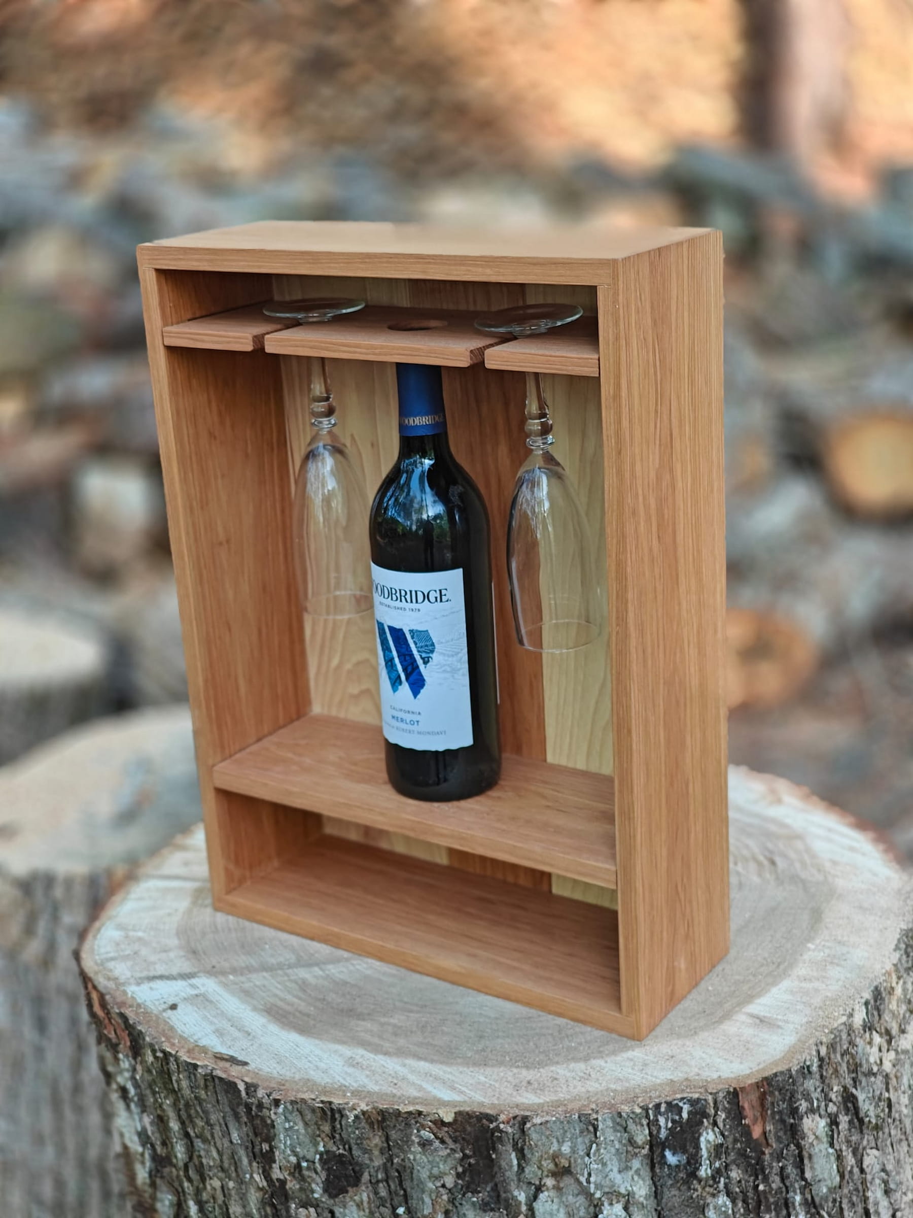 Hickory · hanging · stemware rack · carved back panel
